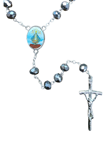 Our Lady of San Juan Grey Metallic Crystal Rosary